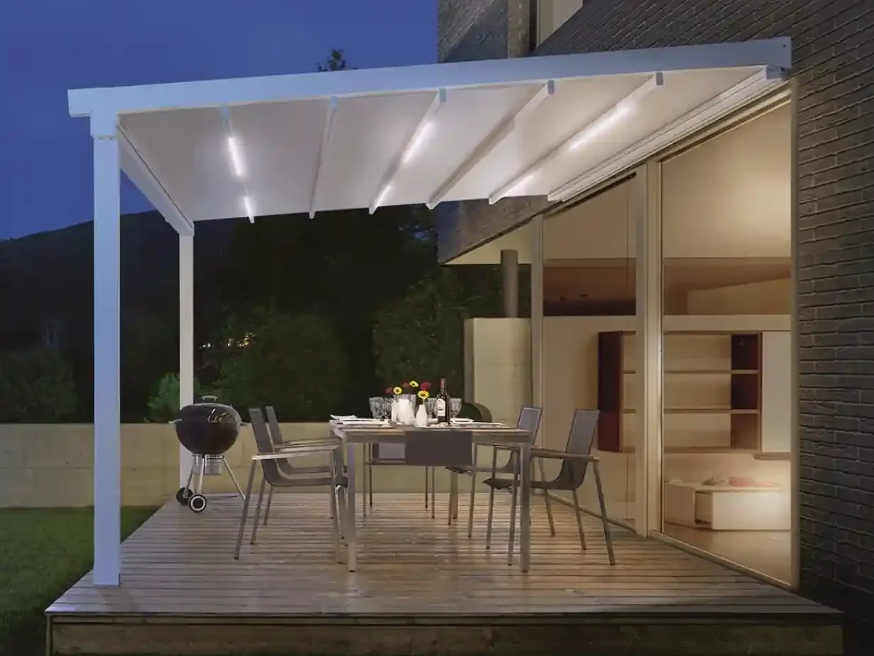 Jede Pergola SUNRAIN von Leiner ist standardmäßig mit einem Markisentuch aus einem PVC-Hochleistungsgewebe ausgestattet. Speziell für den Einsatz im Markisenbereich entwickelt, erfüllt es höchste Ansprüche. Absolut wasserdicht und in einer trendigen Farbauswahl steht Ihnen PRECONTRAINT 302 zur Auswahl. Übrigens bietet es in jeder Farbe – bereits bei Weiß – den höchsten UV-Schutzfaktor 80. Auf Wunsch lässt sich die Pergola SUNRAIN auch mit dem lichtundurchlässigen PRECONTRAINT 602 – in Weiß oder Elfenbein – ausstatten.