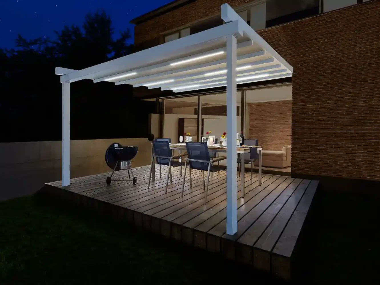 Sie erhalten die Pergola SUNRAIN ohne Mehrpreis in den Standardfarben Reinweiß RAL 9010, Verkehrsweiß RAL 9016, Weißaluminium 9006 und 12 trendigen Leiner LOUNGE Feinstrukturfarben. Oder gegen Aufpreis in Ihrer RAL Wunschfarbe.