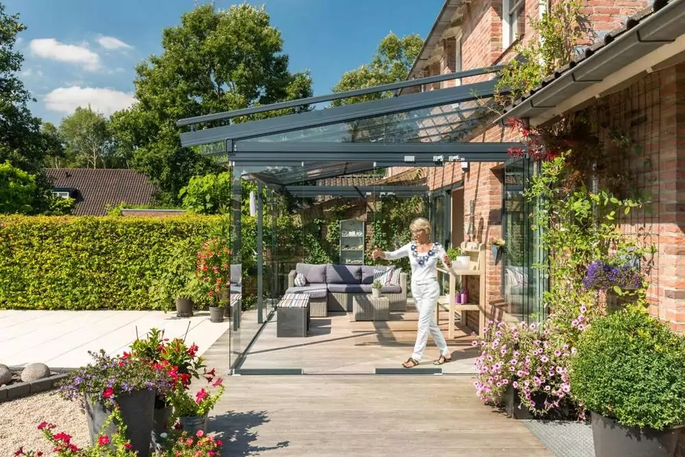 Solarlux bietet hochwertige Terrassen- und Glasdächer aus Aluminium und Sicherheitsglas, die Schutz vor Regen, Wind und Wetter bieten und den Außenbereich ganzjährig nutzbar machen. Die Systeme zeichnen sich durch langlebige, witterungsbeständige Materialien, große Spannweiten und transparente Verglasung aus, wodurch sie ein offenes und lichtdurchflutetes Raumgefühl schaffen. Solarlux-Glasdächer lassen sich individuell planen und gestalten, können nachträglich zu einem Glashaus mit seitlichen Glas-Elementen erweitert werden und bieten vielfältige Optionen zur Integration von Zubehör wie Beschattung und Beleuchtung.